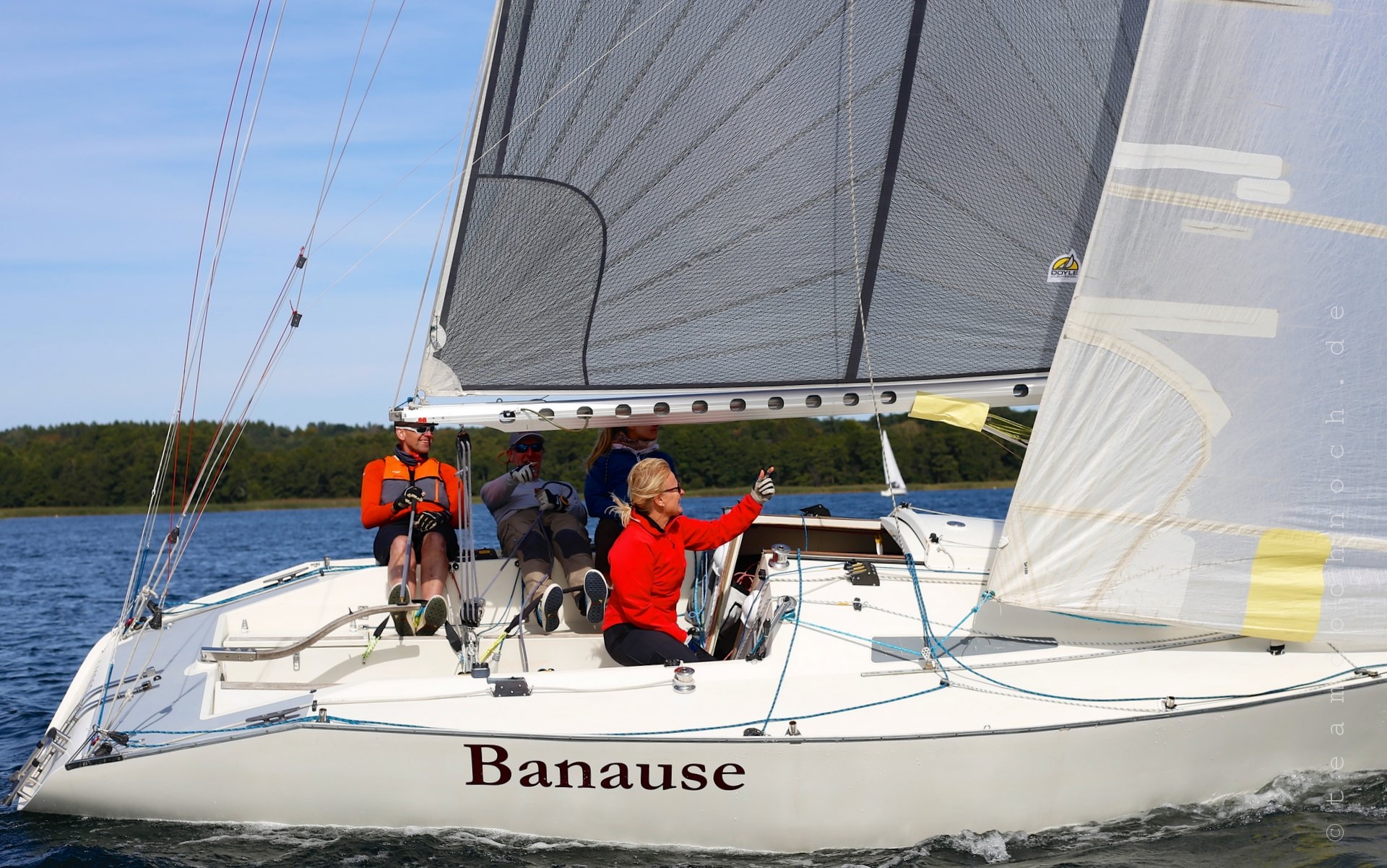 Nach der 3 geht wieder der spi hoch, oder nein – er geht nicht hoch, das spifall hat sich gelöst und so ist nur das fall oben. Scheiße, das war wohl mein fehler beim umschäkeln – schnappschäkeln muss ich wohl noch lernen.