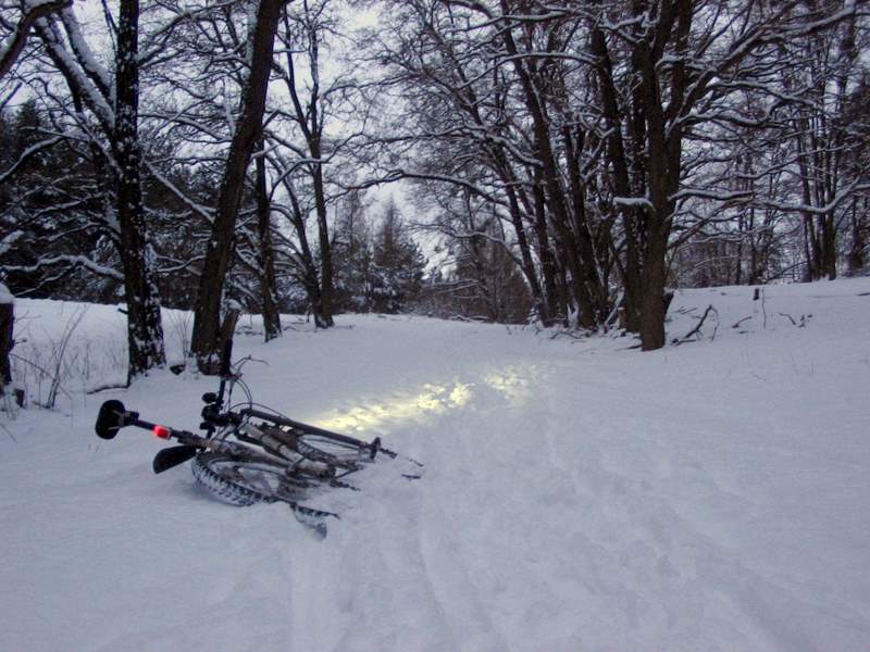 Der Winter ist richtig zurück gekommen in den Barnim und und bringt wieder neue Herausforderungen beim Biken. Schneehöhen von bis zu 20 Zentimetern sind noch zu fahren, aber doch so anstrengend, daß jede niedergetrampelte oder -gefahrene Spur eine Freude ist: