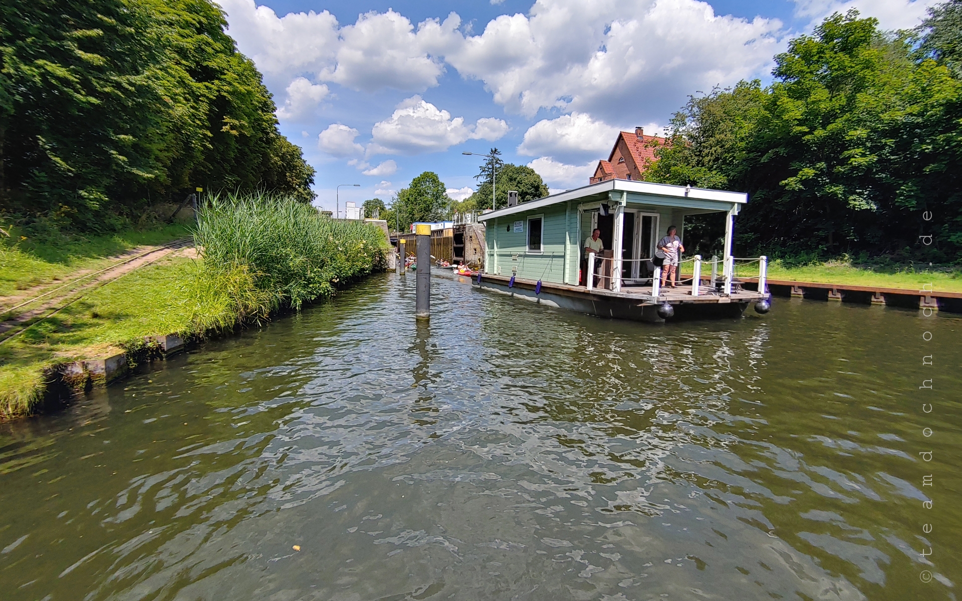 Die Tour auf der Schwaanhavel beginnt in Wesenberg am Woblitzsee und das erste zu überwindende Hindernis ist die Schleuse Wesenberg. Mit dem leichten Paddelbrett zum Glück kein Problem, sonst gäbe es die Möglichkeit, sich zum Schleusen oder für die Bootsschleppe anzustellen.