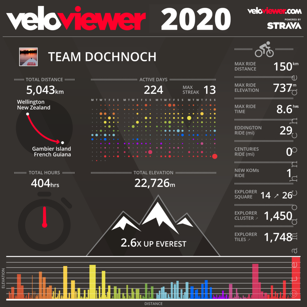 Die Daten vom Veloviewer basieren auf bei STRAVA erfassten Touren, Wanderungen, Aktivitäten. Insofern gibt es leichte Abweichungen zu meinen per Tabelle zusammengestellten 2020er Daten.