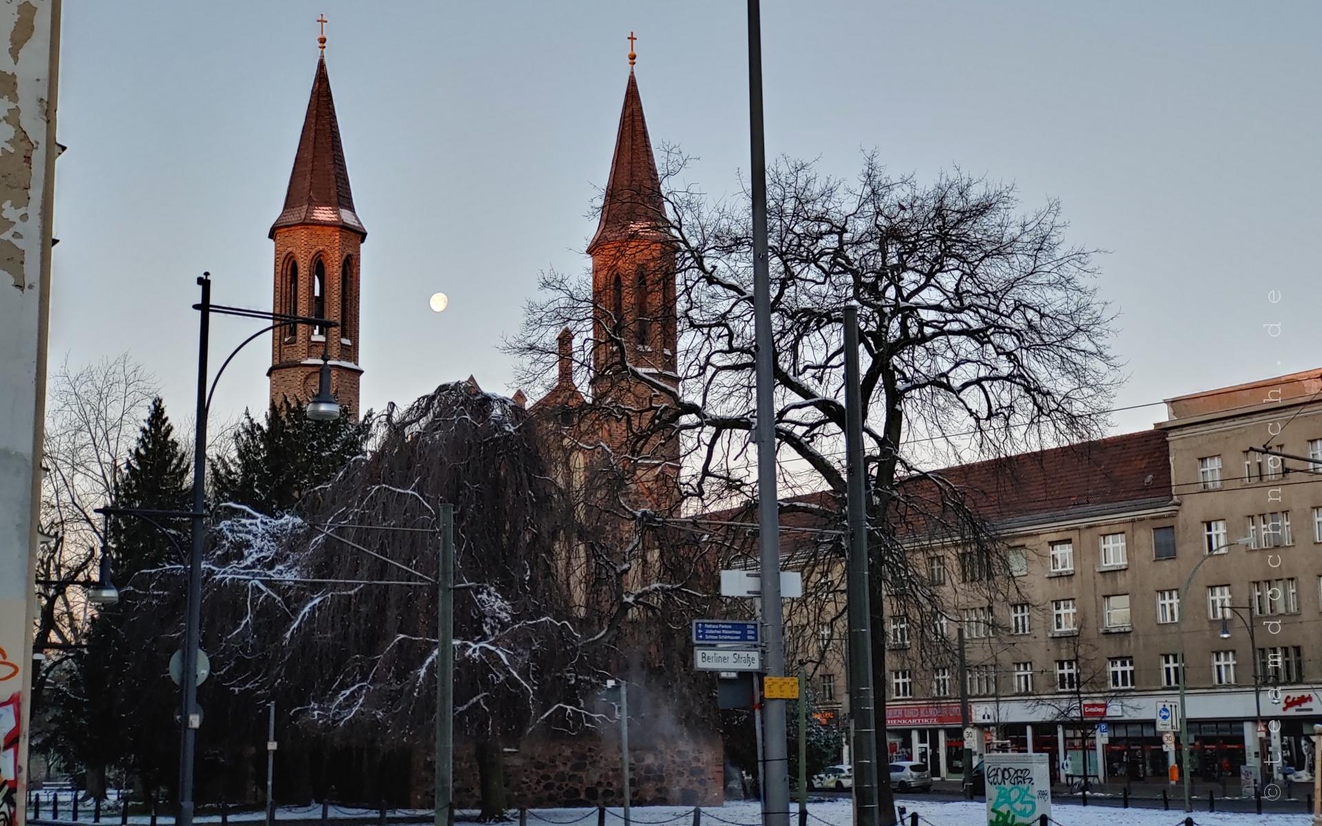 Wir trafen uns pünktlich um 8.00 Uhr unter dem vollen Mond an der Kirche von Pankow und fuhren zunächst nach Osten. Der Wuhle entgegen. Der Plan sah vor, eine große Runde in Berlin zu drehen. Es sollten unbekannte Ecken befahren werden und Ecken, an denen ich ewig nicht war. Der Teufelsberg gehörte dazu.
