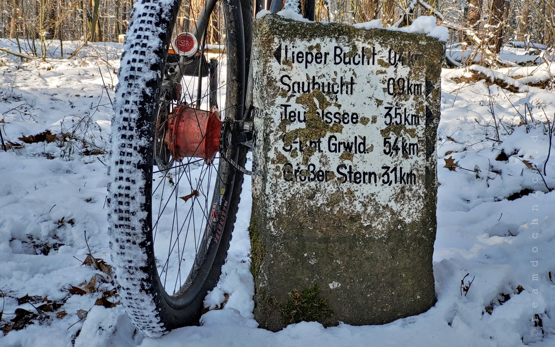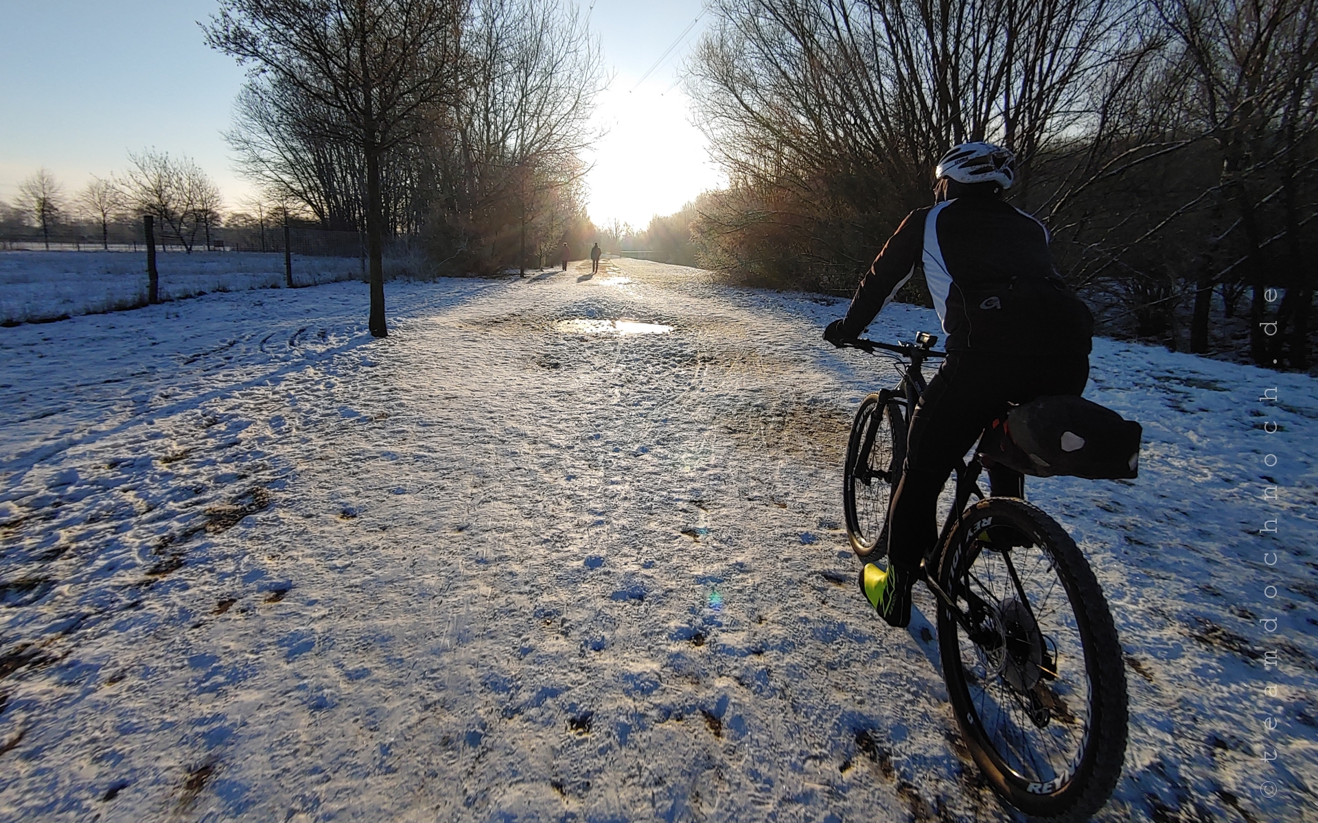Es gab den Plan, auch im Januar einen Granfondo zu fahren, also eine Tour mit über 100 Kilometern. Die Verabredung stand schon eine Weile. Das Wetter im Januar war bisher vor allem von der wechselhaften Sorte. Aber wie durch ein Wunder, sollte gerade der 31.01. weder starken Wind noch heftigen Niederschlag haben. Dafür aber etwas Frost und den Schnee, der in den Vortagen gefallen war.