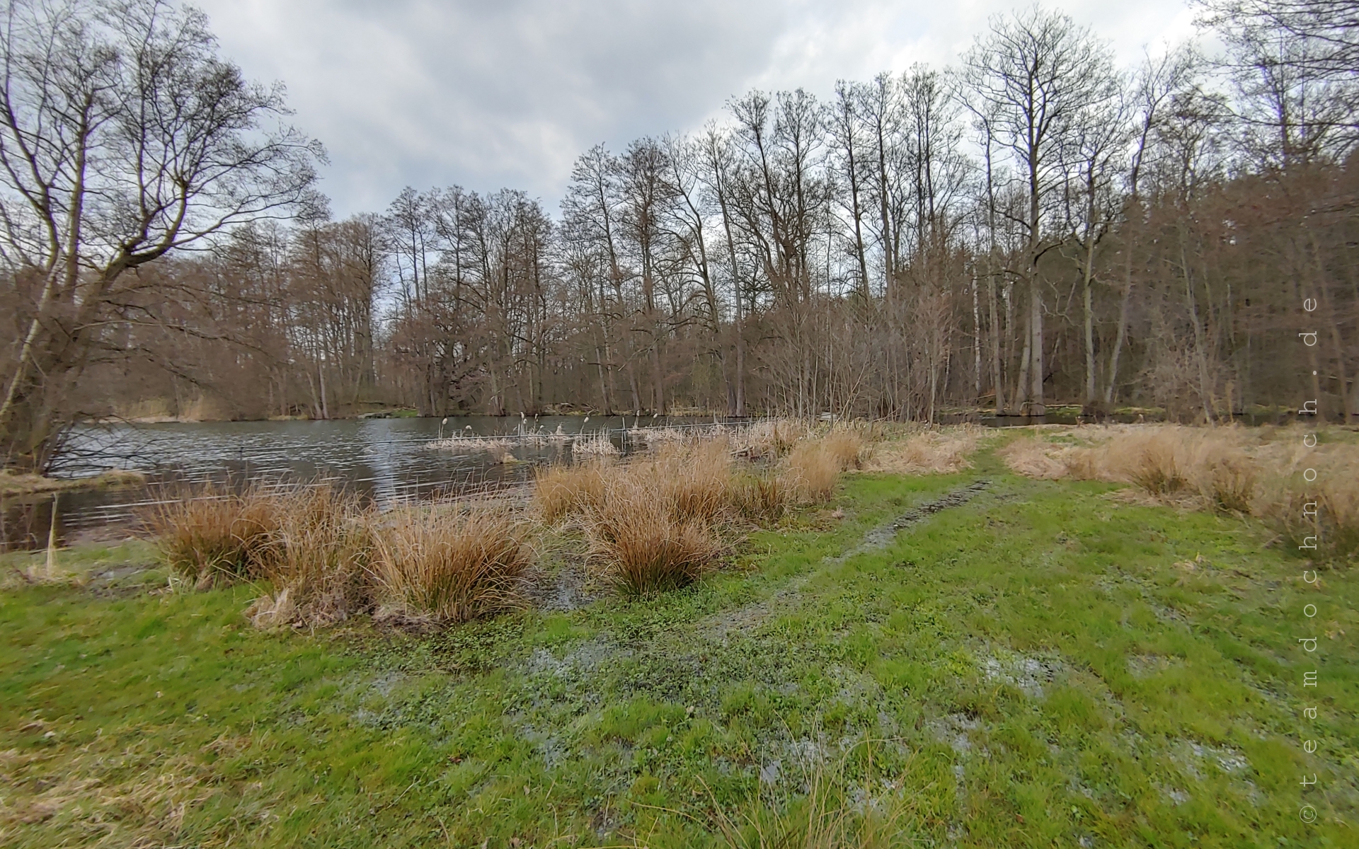Die Tongrube Zehlendorf ist Angelgewässer und ich probiere, sie zu umrunden. Will mir dann aber doch keine nassen Füße holen und drehe wieder um.