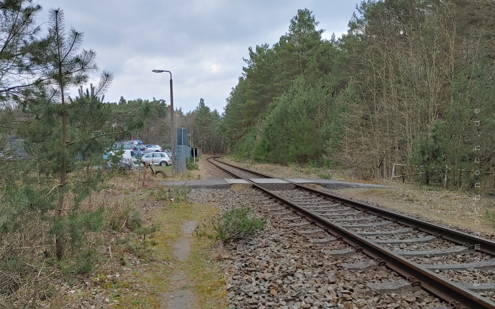 Der Kavelgraben wird überquert und ab hier geht es vor allem Richtung Osten. Nördlich von Rehmate kreuze ich noch etwas durch den Wald, da mal wieder die Landschaft nicht ganz zur Karte paßt. Komme dann westlich von Klosterfelde zwischen Resten der Fliegerabwehr-Raketenabteilung 4123 hindurch und quere nach Klosterfelde die Gleise der NEB. Und als ich wieder im Wald bin, höre ich noch das Signal des Zuges aus Groß Schönebeck.
