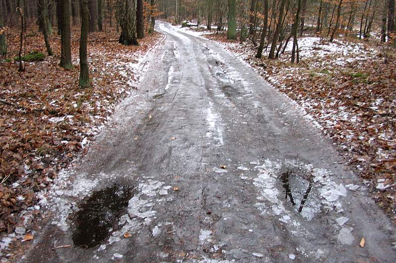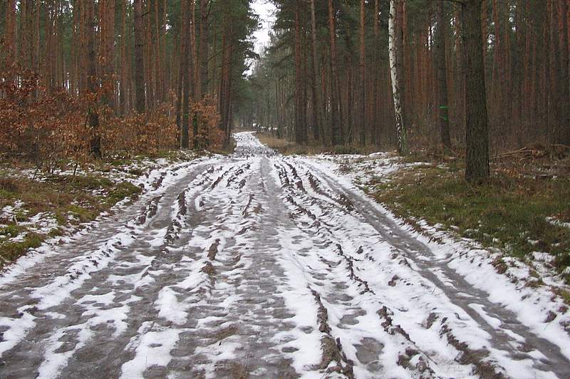 Viele der wichtigen Waldwege und auch Teile des Treidelwegs sind noch von einer dicken Schicht aus überfrorenem festgefahrenem Schnee bedeckt, manchmal verstecken sich auch nur mäßig zugefrorene Pfützen auf den Wegen: