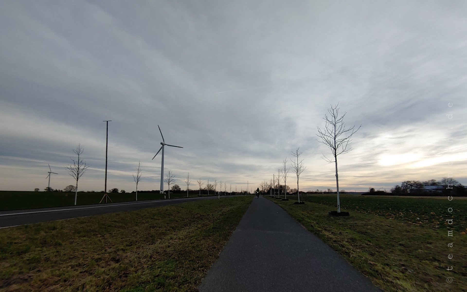 Kurz vor dem See erinnere ich mich an eine Fahrt vor vermutlich 23 Jahren, als ich nach Wesendahl unterwegs war. Es war Winter oder Herbst und ich war auf dem Sportrad meines Vaters unterwegs, als mir plötzlich das Hinterrad seitlich wegrutschte. Dabei kam es nicht zu einem Sturz, da diese Glatteisstelle nur wenige Meter breit gewesen war, aber danach war das Hinterrad durch die Wechselbelastung so verzogen, dass ich eine satte Acht in der Felge hatte. Es ging gerade noch zu fahren.