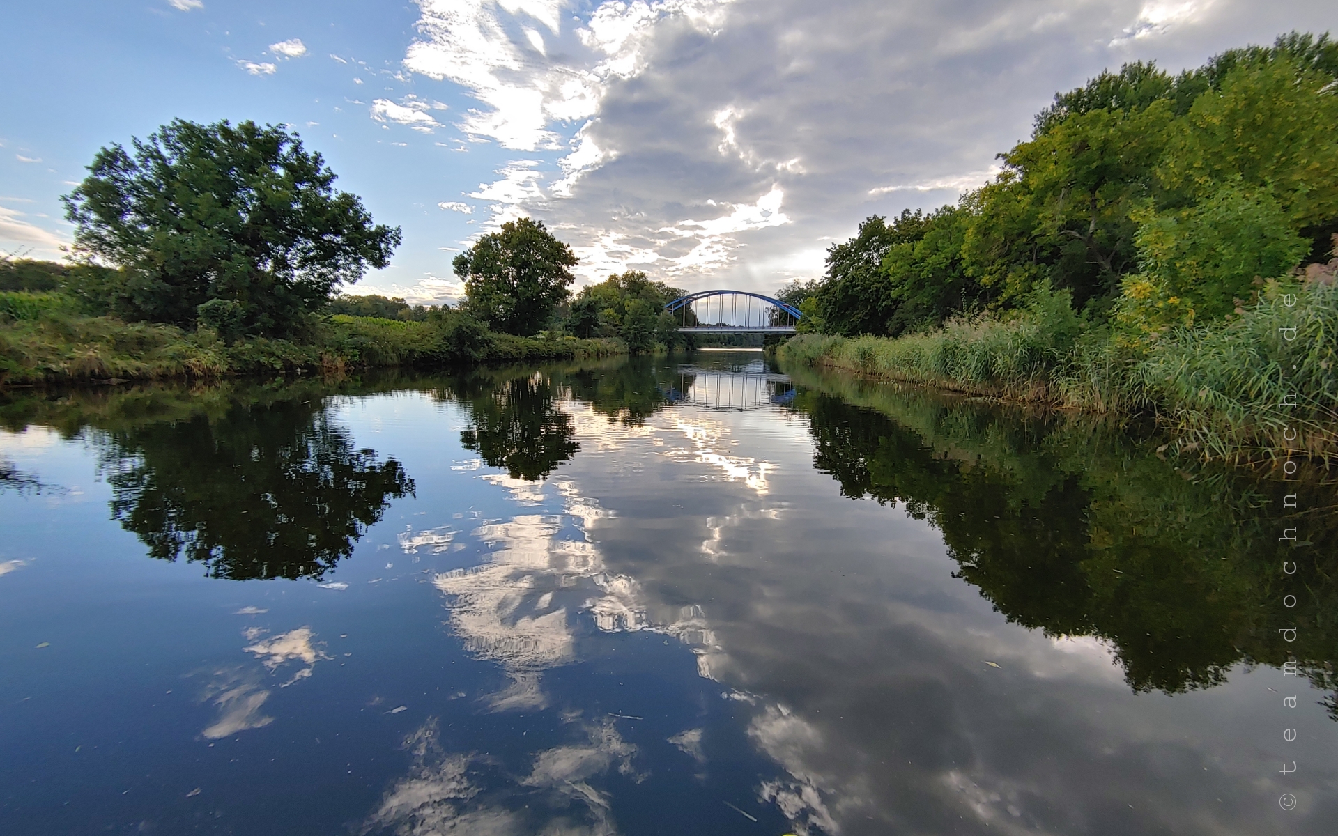 Die Bedingungen sind günstig. Es ist fast windstill und die Sonne scheint. Dadurch sind auch die schnurgeraden 5 Kilometer auf dem Oder-Havel-Kanal gut zu paddeln.