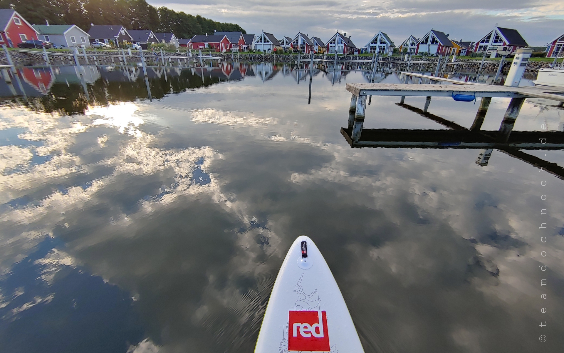 Ich drehe eine kleine Runde durch das Hafendorf von Zerpenschleuse. Die Idee, den Urlaub am Wasser mit dem eigenen Boot fast vor der Nase zu verbringen, finde ich prinzipiell nicht verkehrt. Aber so, wie die irgendwie gleichen und doch nicht gleichen Häuschen da stehen und dann mit den leeren Stegen, finde ich es nur mittelmäßig einladend.