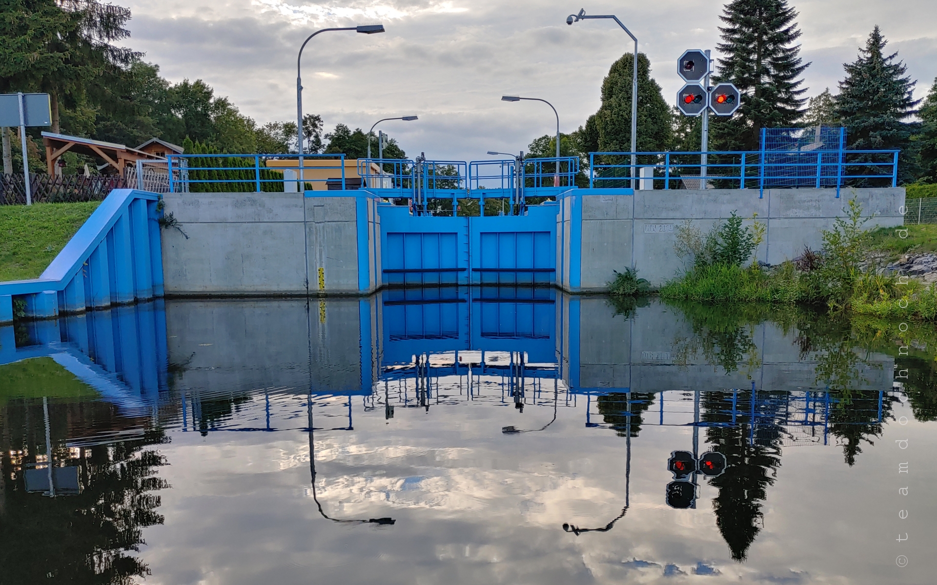 Da ist die Schleuse schon spannender. Wieder einmal eine etwas andere Ausführung bei den Toren gegenüber dem, was in der Region sonst so gebaut wurde. Und das betrifft nicht nur die Farbe. Ein Paar weitere Bilder gibt es hier: Schleuse Zerpenschleuse